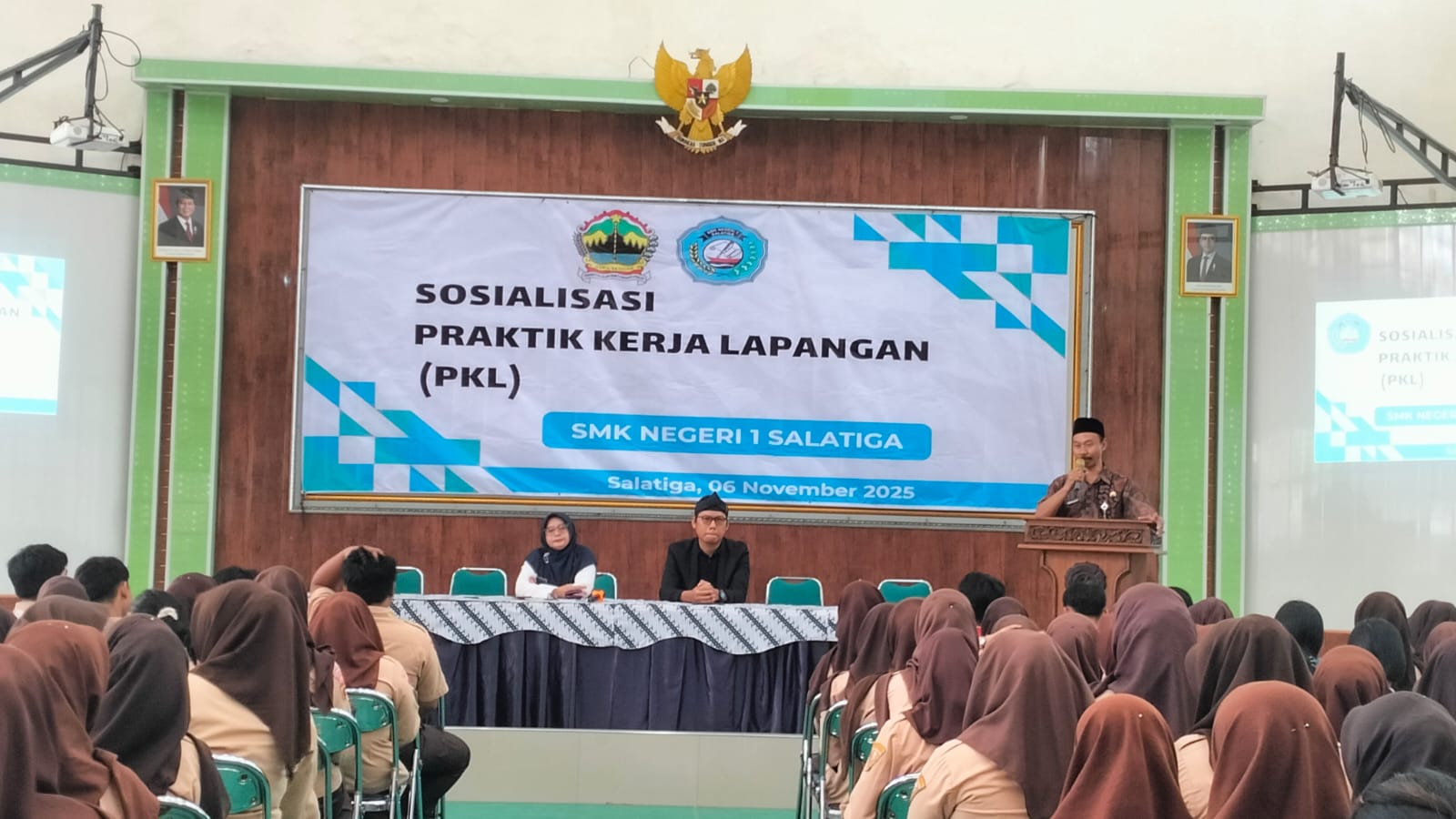 Pada Jumat, 8 November 2025, SMK Negeri 1 Salatiga kembali melanjutkan kegiatan Sosialisasi dan Pembekalan Praktik Kerja Lapangan (PKL) yang kini diikuti oleh siswa kelas XII jurusan Manajemen Perkantoran dan Layanan Bisnis (MPLB), Akuntansi dan Keuangan Lembaga (AKL), serta Pemasaran. Kegiatan yang berlangsung di aula sekolah ini menjadi kelanjutan dari rangkaian pembekalan PKL yang telah digelar sebelumnya untuk jurusan lain.