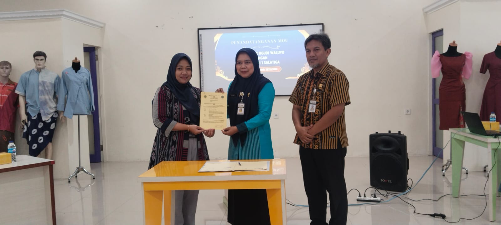Selasa, 6 Januari 2026 SMK Negeri 1 Salatiga melaksanakan kegiatan penarikan mahasiswa Program Asistensi Mengajar dari Universitas Ngudi Waluyo Tahun Akademik 2025/2026. Mahasiswa ini telah menyelesaikan masa pengabdian selama emapt bulan di lingkungan sekolah. Sebanyak lima mahasiswa dari Program Studi Desain Fashion telah berkontribusi aktif, khususnya dalam mendukung kegiatan pembelajaran dan praktik pada Jurusan Busana.