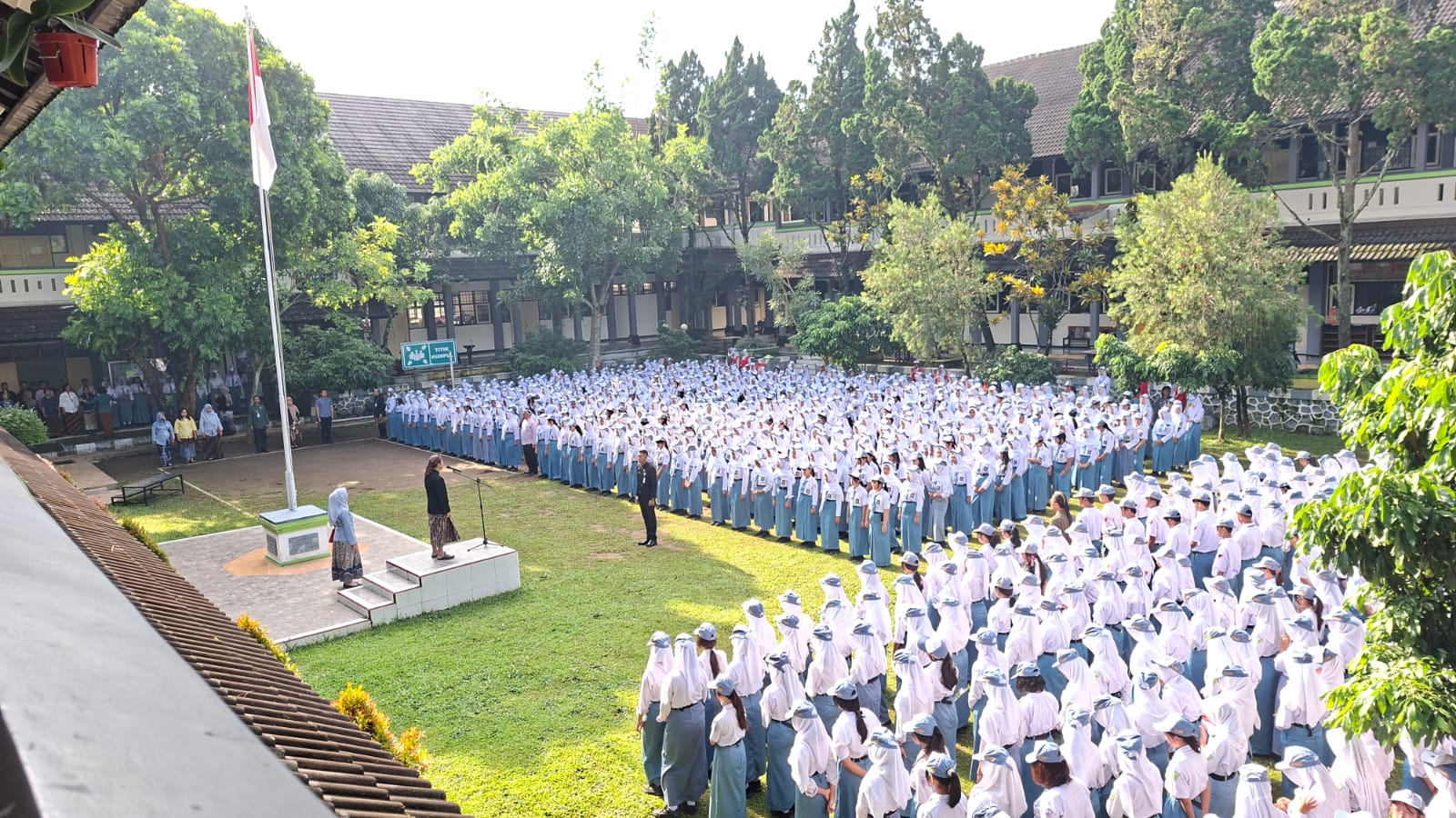Sebagai Inspektur Upacara, Bapak Imam membacakan amanat Menteri Pendidikan, Kebudayaan, Riset, dan Teknologi. Dalam pidatonya, disampaikan bahwa guru saat ini menghadapi tantangan yang semakin berat, terutama dalam menghadapi kemajuan teknologi dan perubahan zaman. Guru diharapkan mampu tampil percaya diri, berwibawa, serta menjadi agen pembelajaran dan peradaban, yang tidak hanya mengajar tetapi juga membentuk karakter bangsa yang bermartabat.