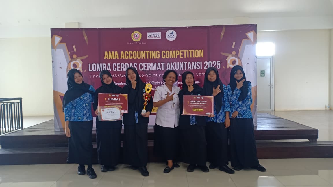 Prestasi membanggakan kembali ditorehkan oleh peserta didik SMK Negeri 1 Salatiga dalam ajang kompetisi akademik tingkat pelajar. Tim Akuntansi berhasil meraih Juara 1 Lomba Cerdas Cermat Akuntansi pada kegiatan Ama Accounting Competition 2025 yang diselenggarakan pada Rabu, 19 November 2025 di Semarang.